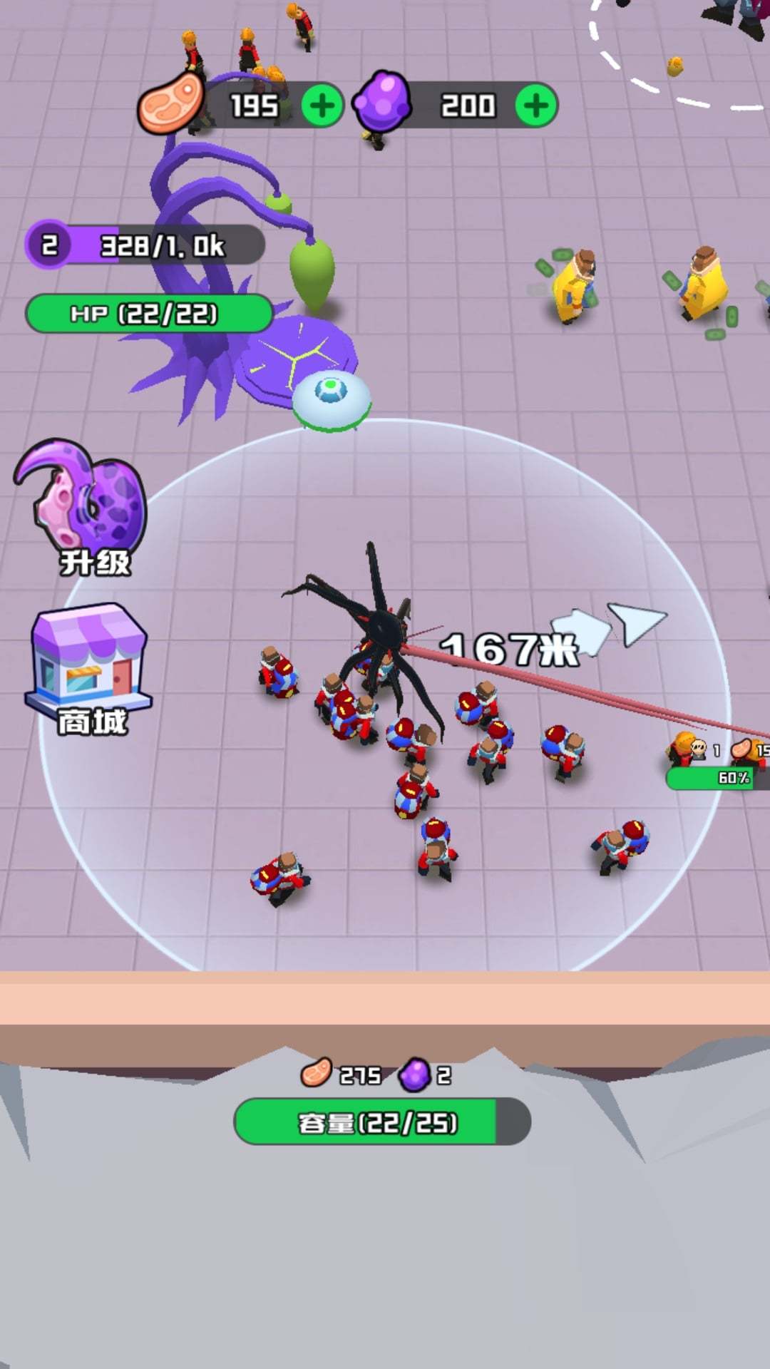 !游戏中你需要滑动屏幕控制外星生物角色移动,玩家还可以将获得的资源用在农场和雇佣商店上 , 游戏的关卡设计丰富多样, 3. **资源利用**:玩家获得的资源可以用在农场开发或者雇佣商店